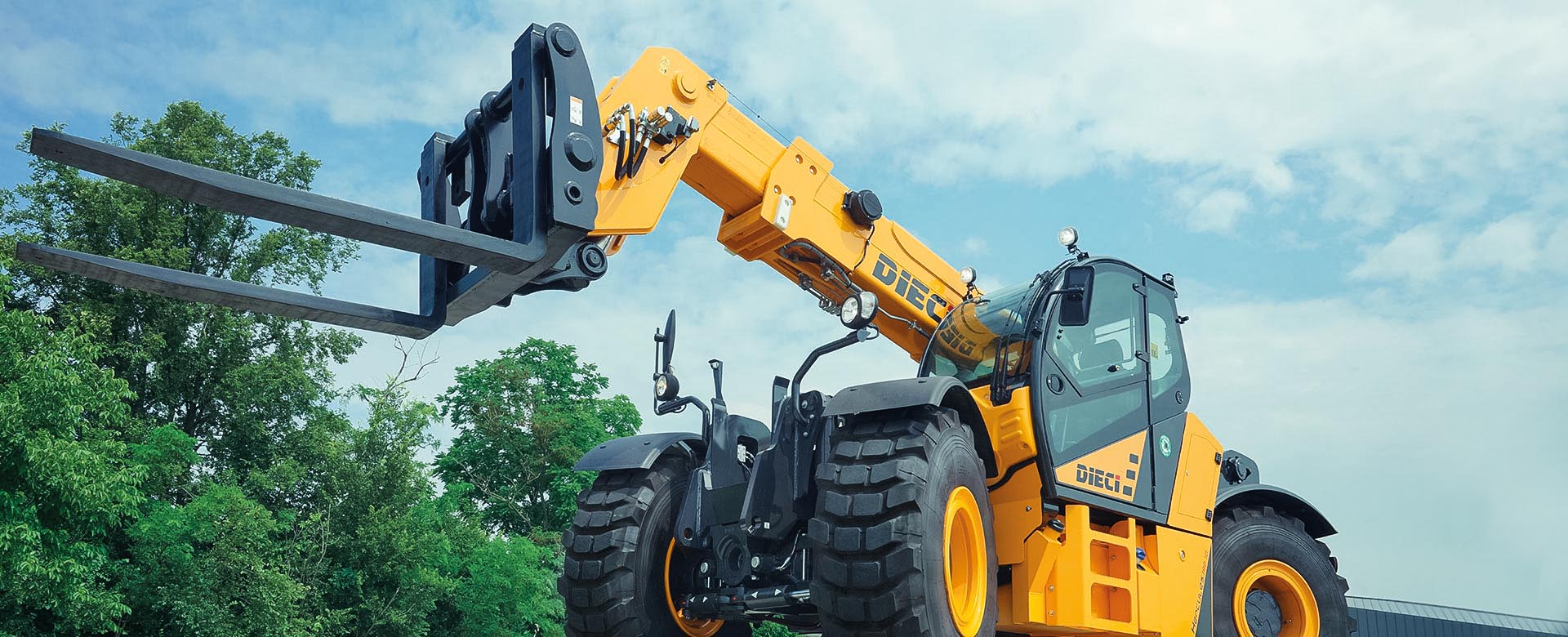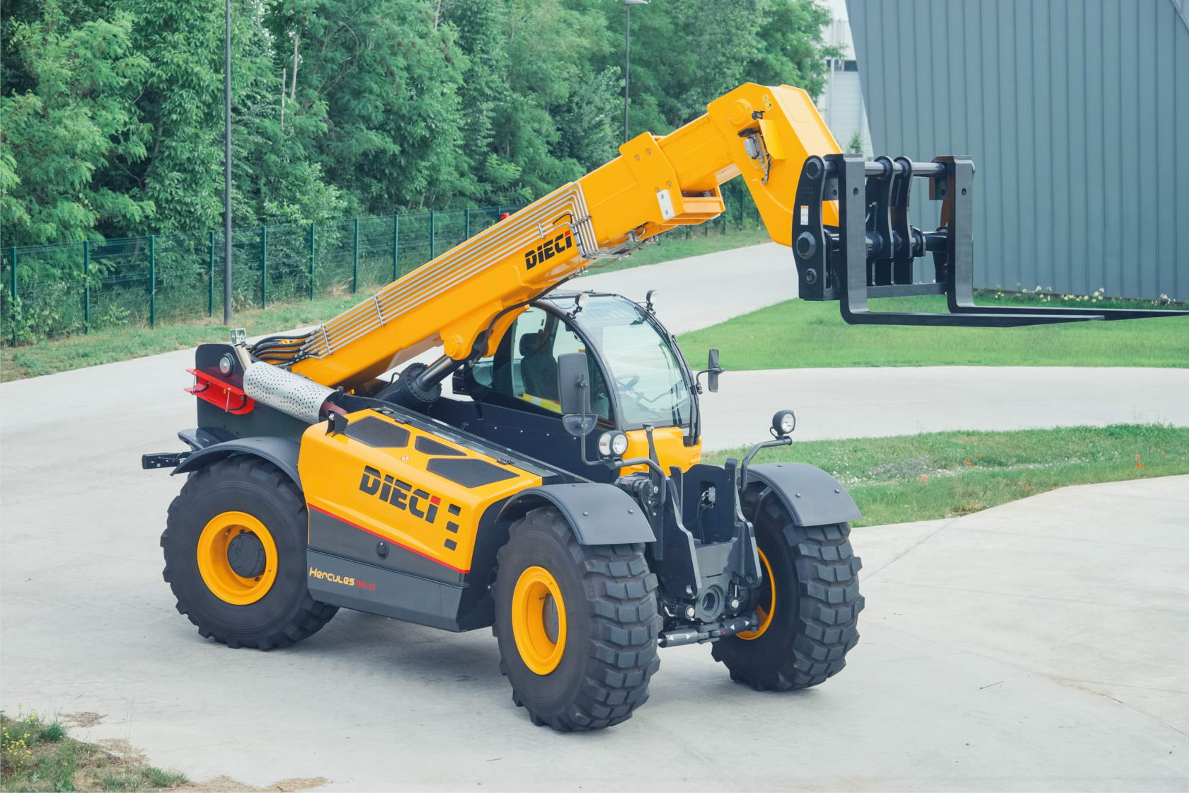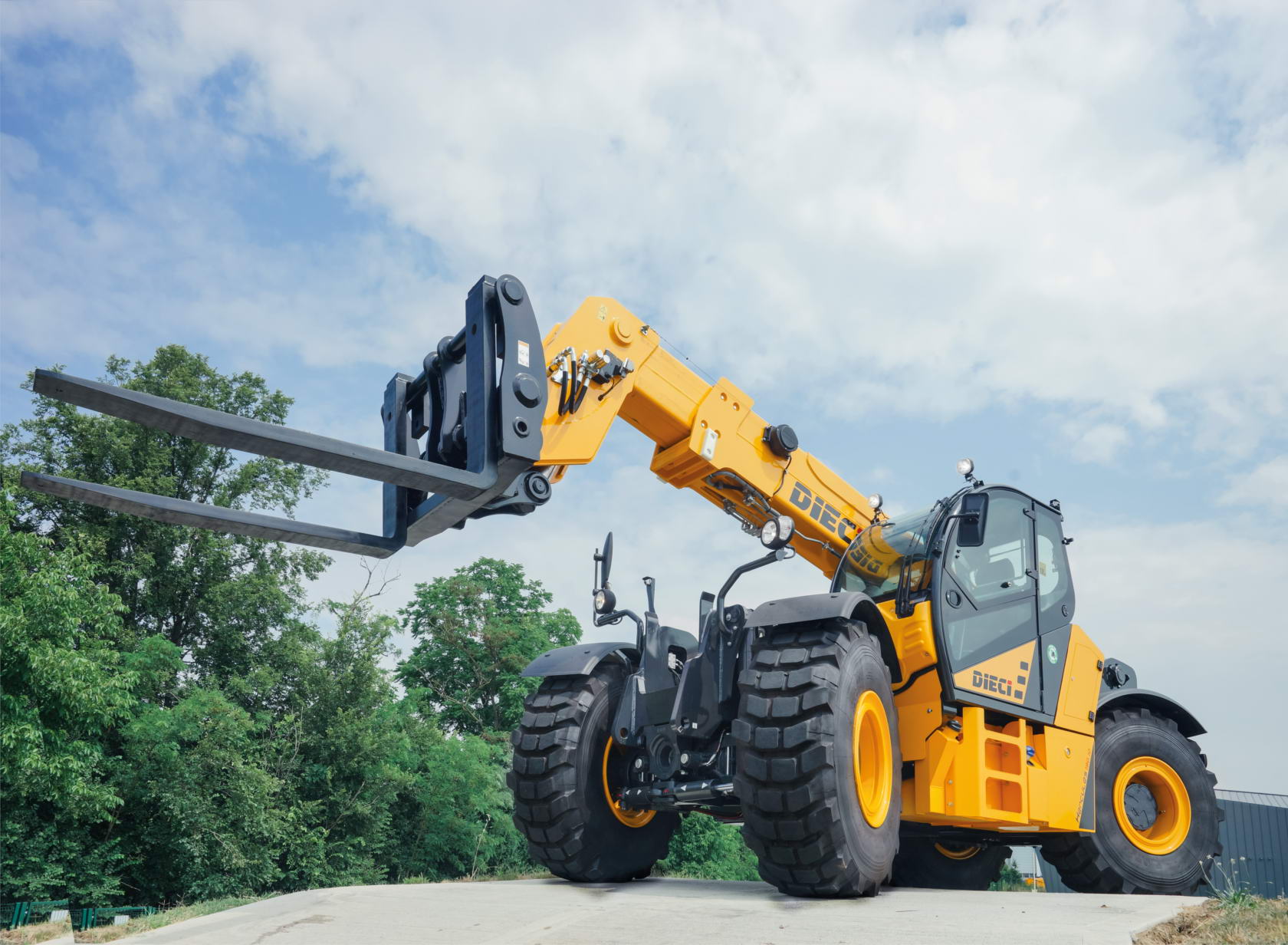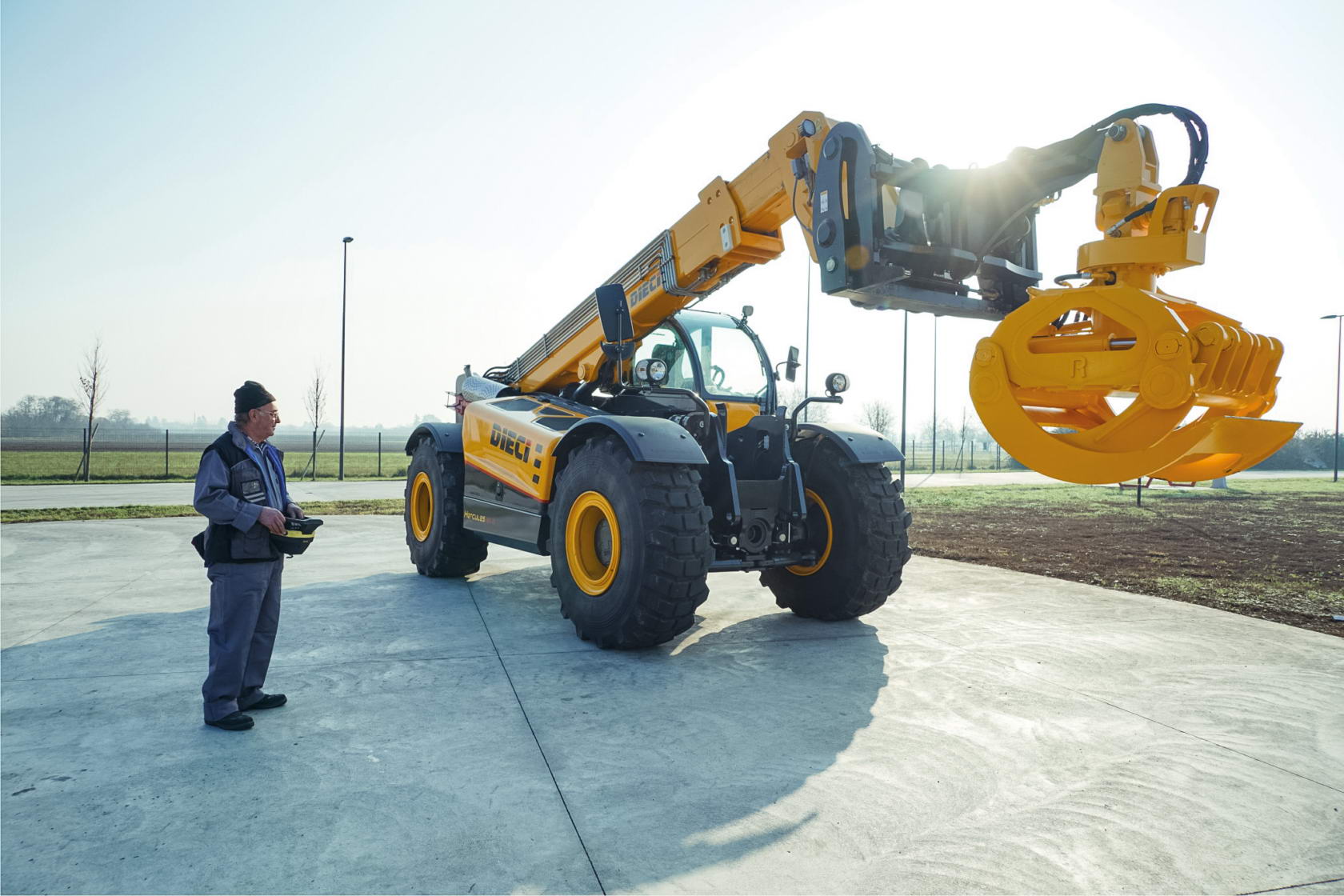 The Dieci telehandlers have been designed to use the various equipment needed to carry out all the work required by a construction site: forks, loaders, lifting hooks, jibs with winches, grippers, material baskets, mixing buckets, concrete ladles, sweepers, salt spreader, snowplow blades.