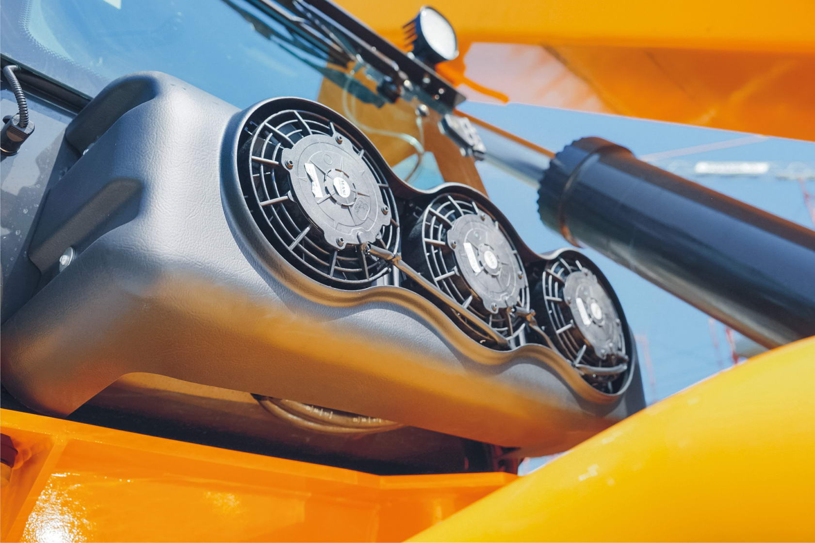 All boom movements are controlled by a single-lever joystick, which also incorporates the direction selector (reverse shuttle – FNR) for intuitive and comfortable control.