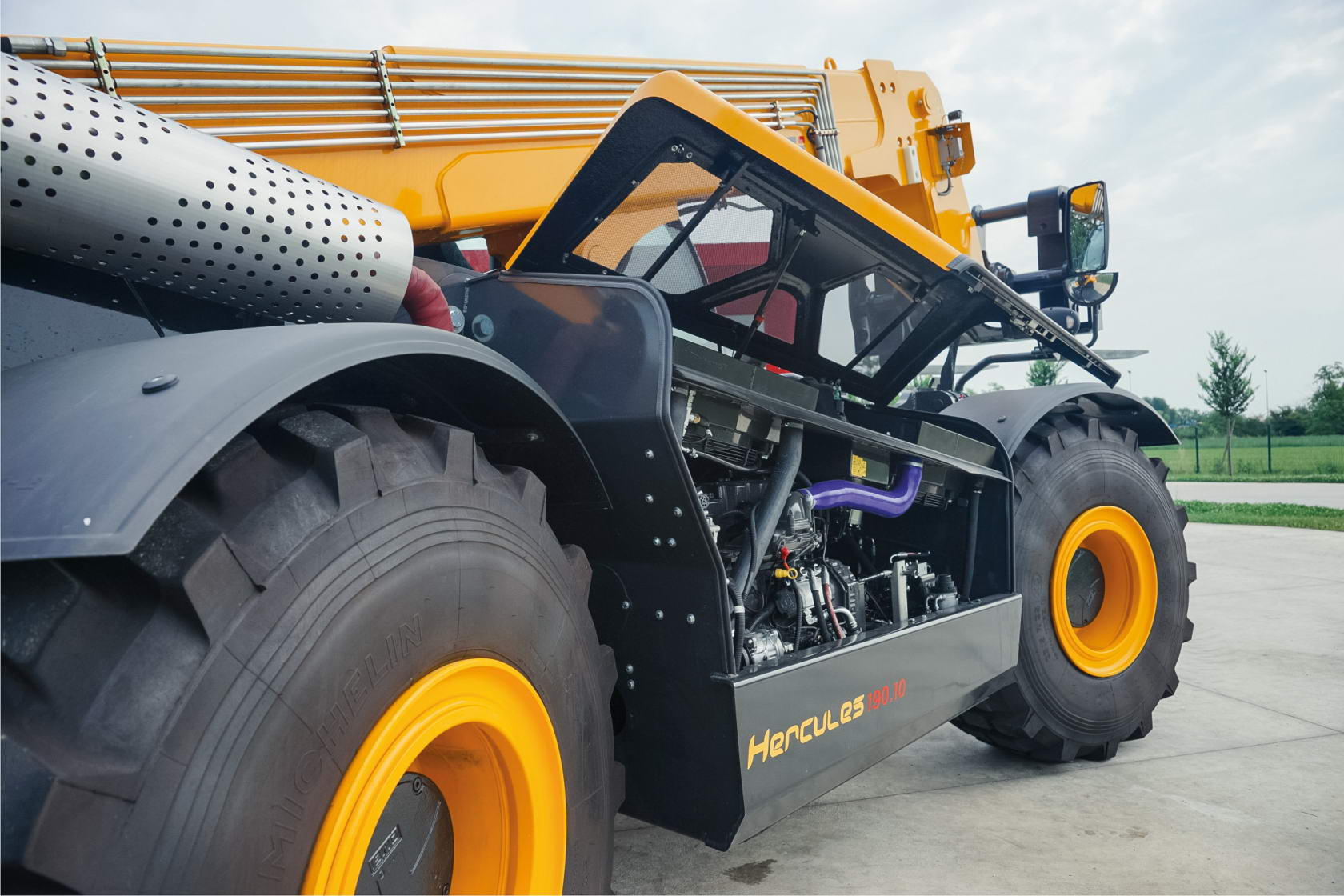 This range of powerful telehandlers, which are positioned in the “giants” market, include all the “pluses” related to safety, handling and comfort, in addition to highly advanced hydraulic solutions, able to use all of their strength in large construction sites, in mining sites and quarries, in harbors and shipbuilding yards, and “heavy” work in general. HERCULES can fit a wide range of accessories (winches, forks and buckets) or tools, finishes and ad hoc solutions, for specific needs.