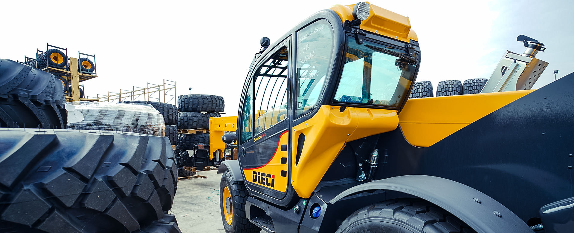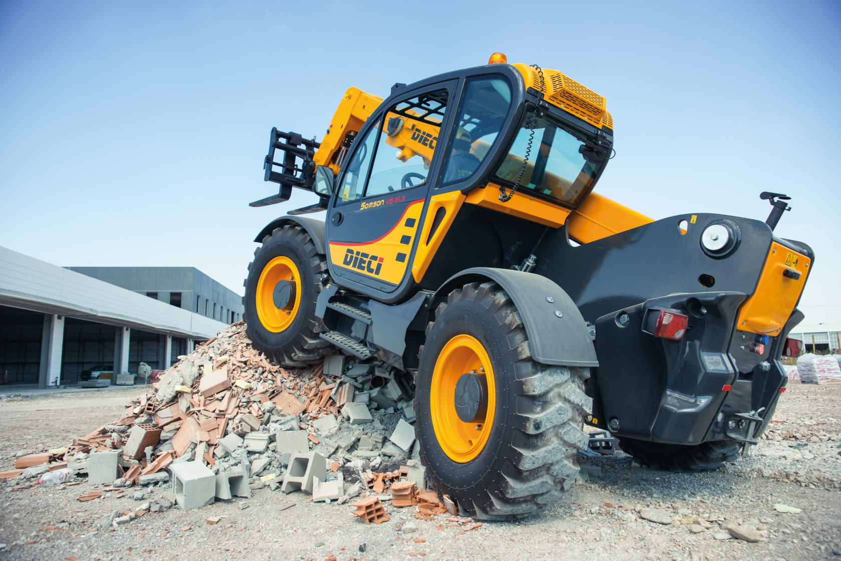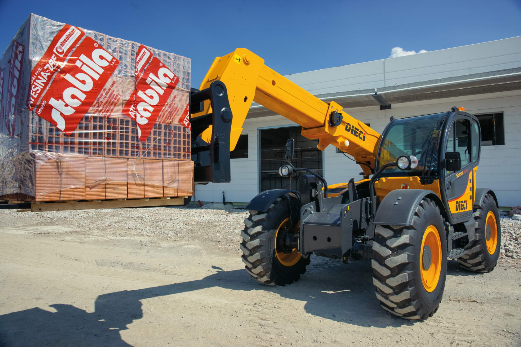 The Dieci telehandlers have been designed to use the various equipment needed to carry out all the work required by a construction site: forks, loaders, lifting hooks, jibs with winches, grippers, material baskets, mixing buckets, concrete ladles, sweepers, salt spreader, snowplow blades.